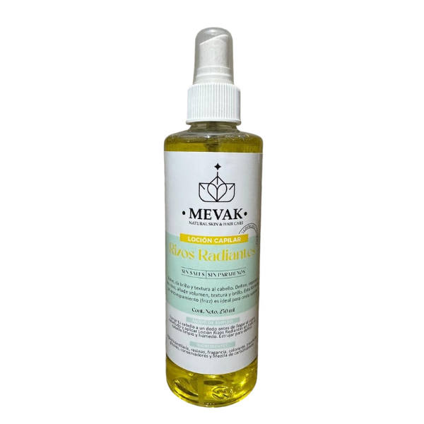 Mejora la apariencia de tus rizos con nuestra Loción Capilar Rizos Radiantes. Nutre, da brillo y textura al cabello. Define, separara los rizos, añade volumen y textura. Esta fórmula sin encrespamiento (frizz) es ideal para onda suaves.