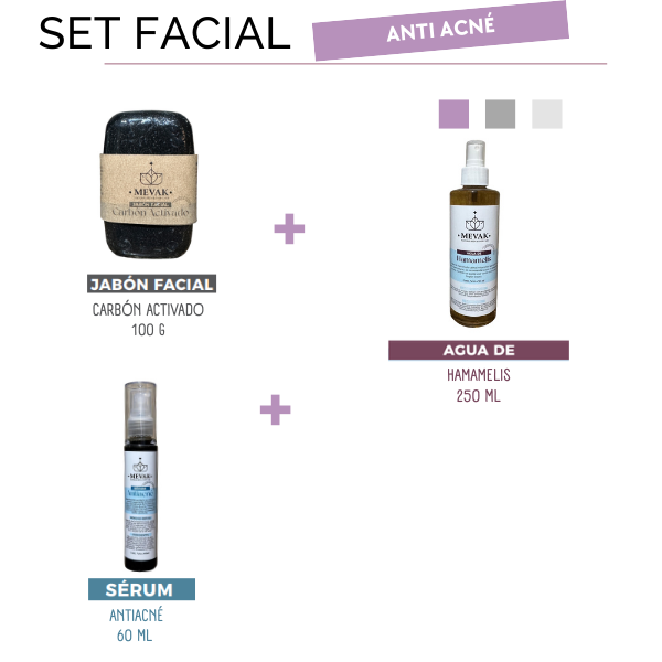 Especial para pieles con brotes de acné, contiene jabón de carbón activado para limpiar profunda y suavemente la piel, dejándola limpia y radiante, agua de hamamelis para reducir la inflamación y calmar la irritación y sérum anti acné para prevenir futuros brotes. ¡Luce una piel más clara y saludable!